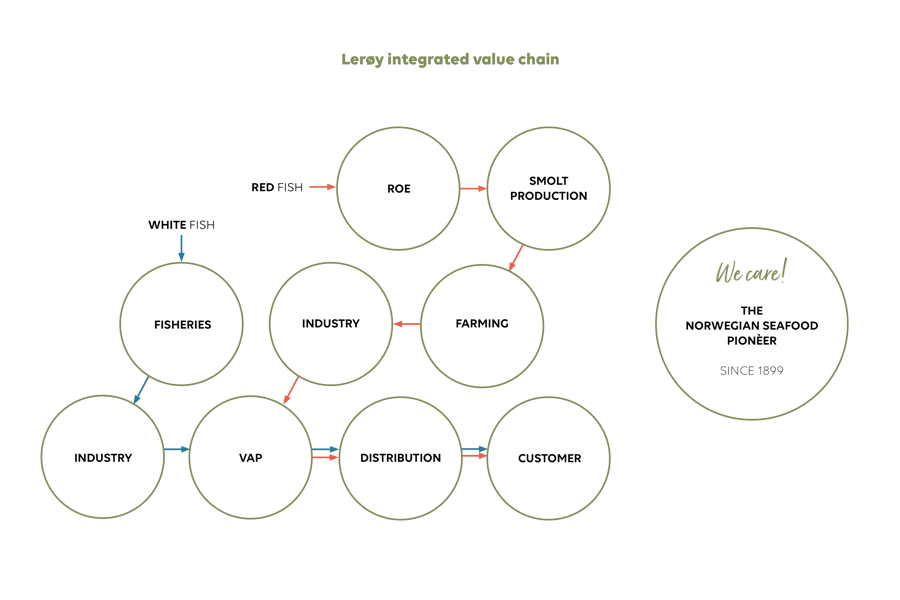One paramount element of Lerøy Seafood Group’s strategy is to be a fully integrated supplier of the Group’s key products – Atlantic salmon, trout and whitefish – and business is currently operated via a number of subsidiaries in Norway and abroad. The Group views its operations as regional with a global perspective. The Group aims to be an enterprise with local roots in communities where it has operations, thereby contributing to all local communities irrespective of region and nationality.
