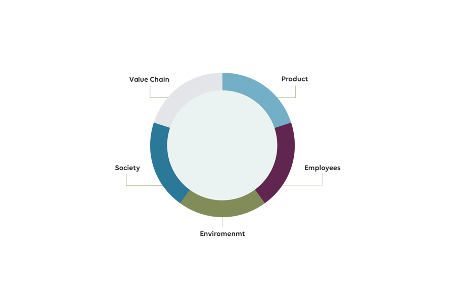 A materiality assessment was performed in 2015, involving interviews of in-house and external stakeholders. The assessment concluded that our sustainability reports should focus on five main areas: product, employees, environment, society and value chain. These areas will therefore receive particular focus in the company’s GRI and sustainability reports.