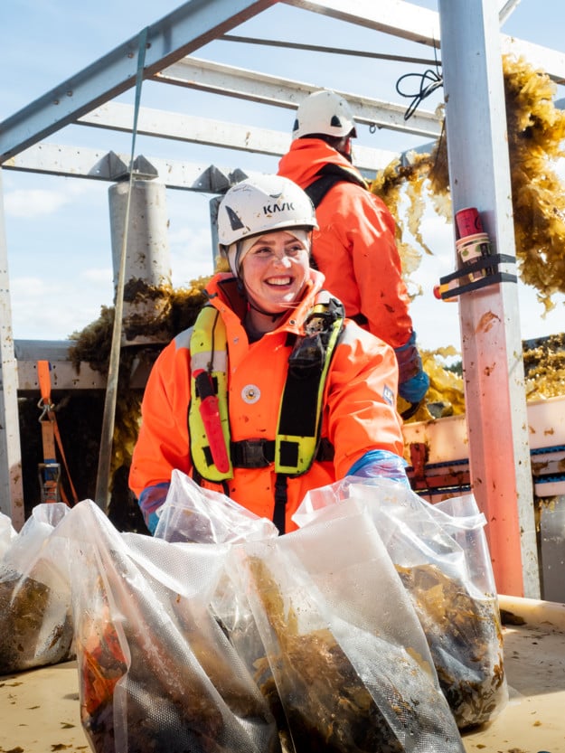 - I’ve become a marine gardener! I’m proud of that, because what we’re doing here is unique”, says Sveier between mouthfuls, while casting slightly nervous glances at the sun popping out from behind the clouds. Because kelp keeps best in the wet and windy weather typical of western Norway.